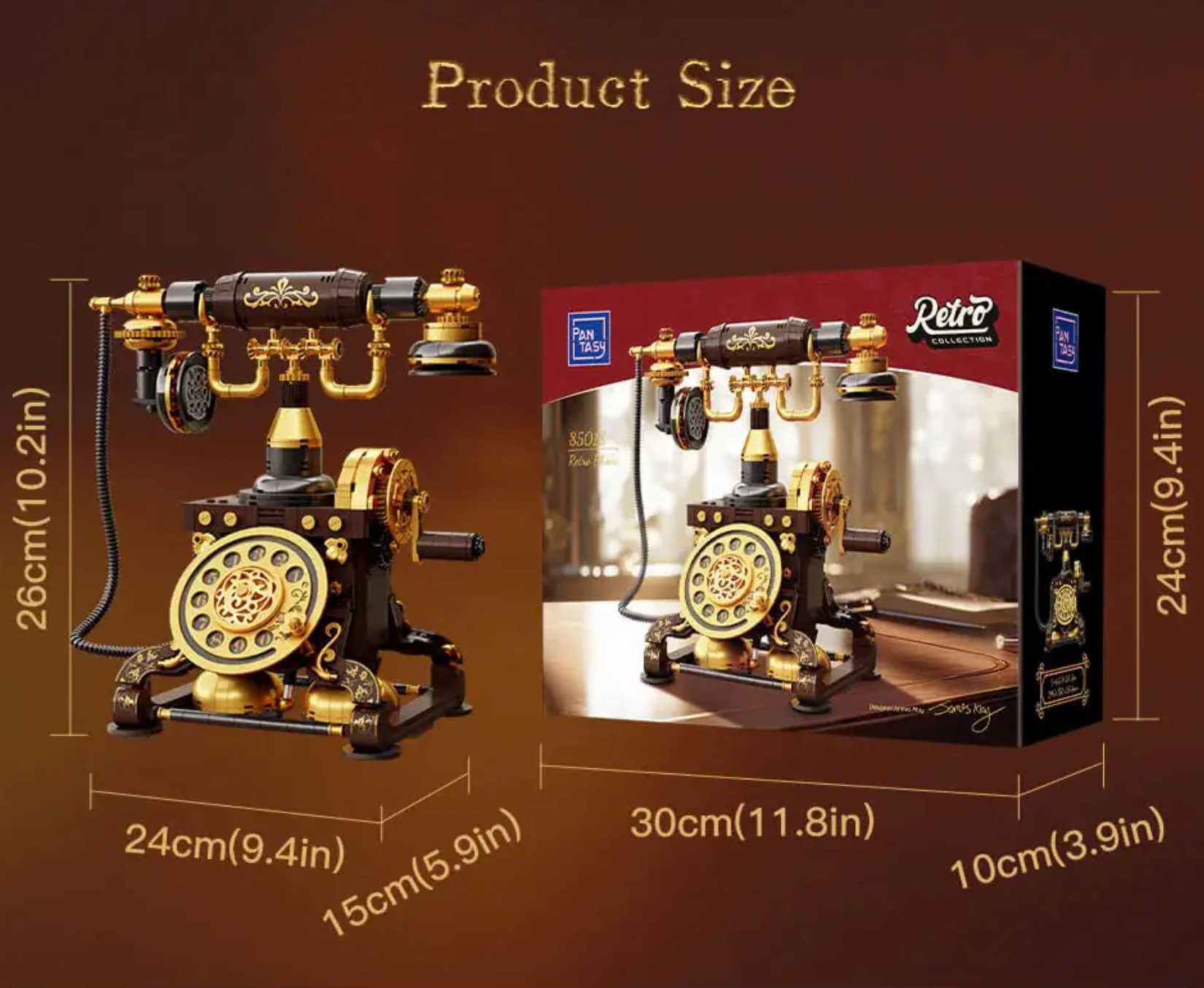 Step back into the elegance of analog communication with Pantasy 85018 Retro Phone, a beautifully detailed building‑block tribute to vintage rotary phones. The finished model measures about 24 × 15 × 26 cm and is built from ABS plastic, featuring realistic design elements like a working rotary dial, spring‑loaded cradle, and bell mechanism. Packaged in a collectible box with an aesthetic instruction manual, it’s ideal for fans of retro decor or block‑building collectors seeking a stylish and interactive display piece.