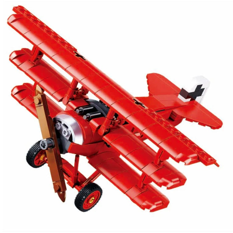 Take to the skies of World War I with the Sluban B1292 Fokker Dr.1 Triplane building block set. Inspired by one of the most iconic fighter aircraft of the early aviation era, this detailed model captures the distinctive triple-wing design, classic fuselage shape, and vintage military styling.